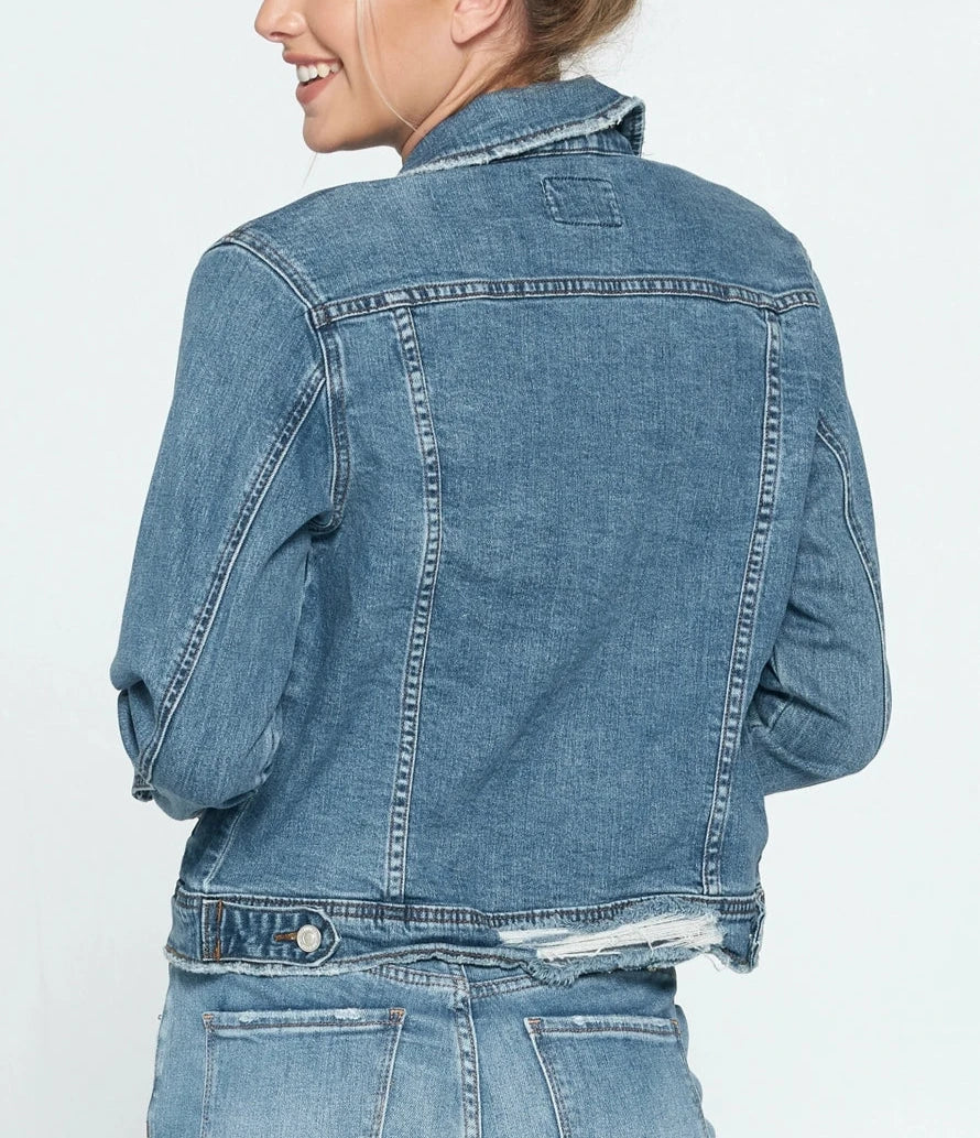 Elevate your style with the Dark Washed Denim Jacket from I&M JEAN, INC. Made from 99% cotton and 1% spandex, this jacket offers ultimate comfort for everyday wear. The dark washed finish adds a sophisticated touch to any outfit. Designed in LA, it exudes quality and versatility, making it a wardrobe essential.