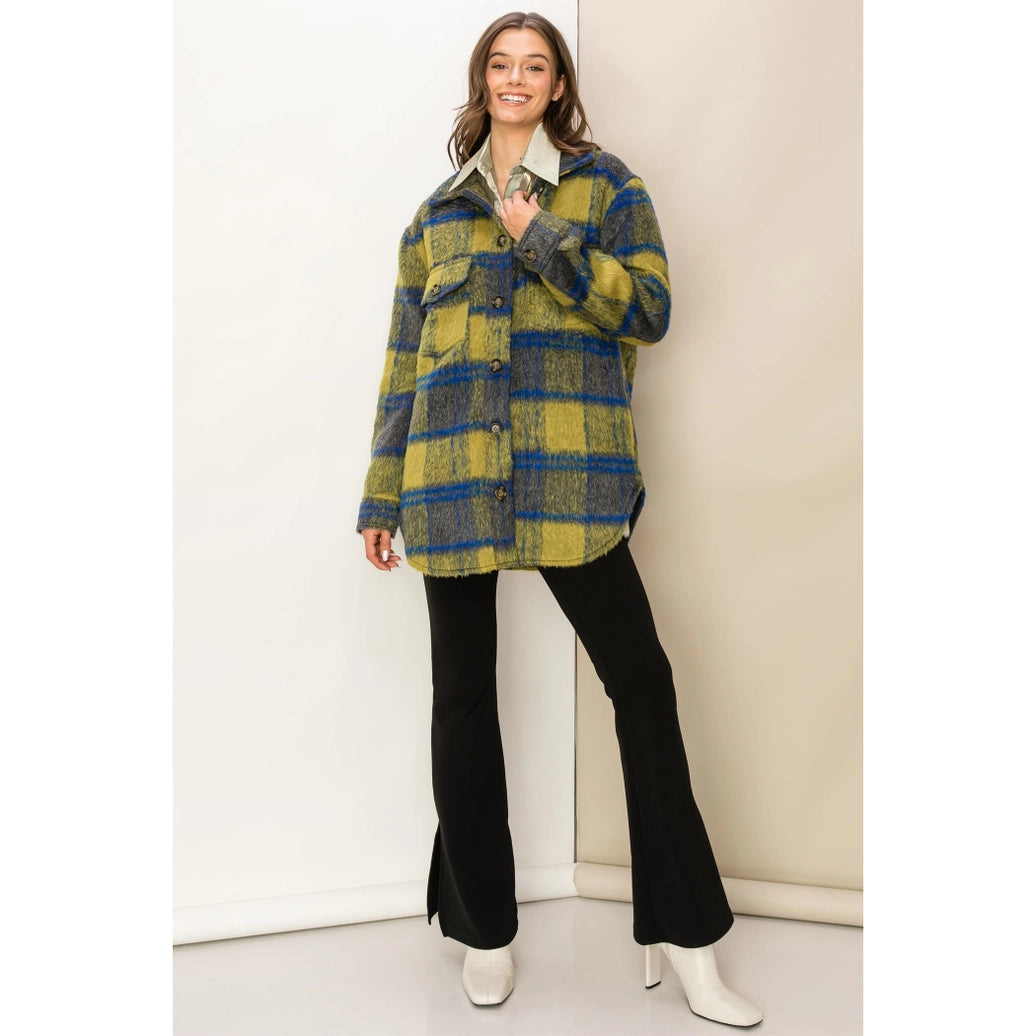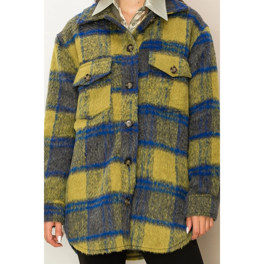 Stay cozy without compromising on style with this ultra-soft shacket! The fuzzy mohair-like construction and classic plaid pattern keep you looking stylish, while its relaxed, button-front bodice and front-flap pockets create a comfortable fit. Fuzzy, fabulous, and fashionable!