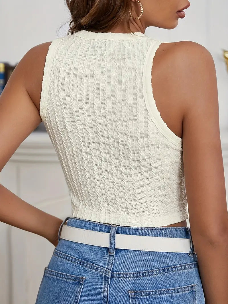This Solid Cropped Tank Top is made from high-quality polyester for a lightweight and durable feel. Perfect for the summer months, this tank top features a crew neckline and a solid color. Easy to care for, simply machine wash or dry clean to keep this tank looking great. Its micro elasticity provides a comfortable fit that is ideal for casual occasions.