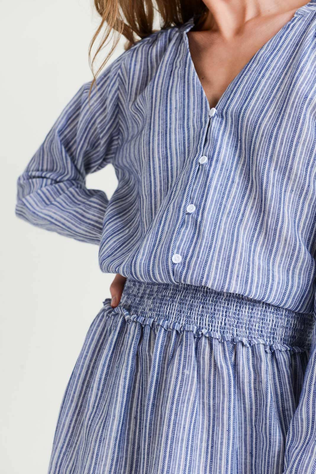 Washed Cotton Yarn Dye Stripe Button Down Dress.