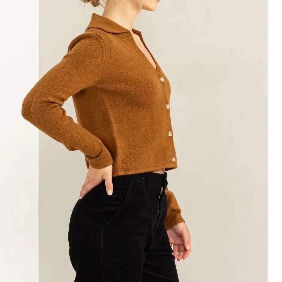• Load image into Gallery viewer, Button Front Collared Cardigan Sweater