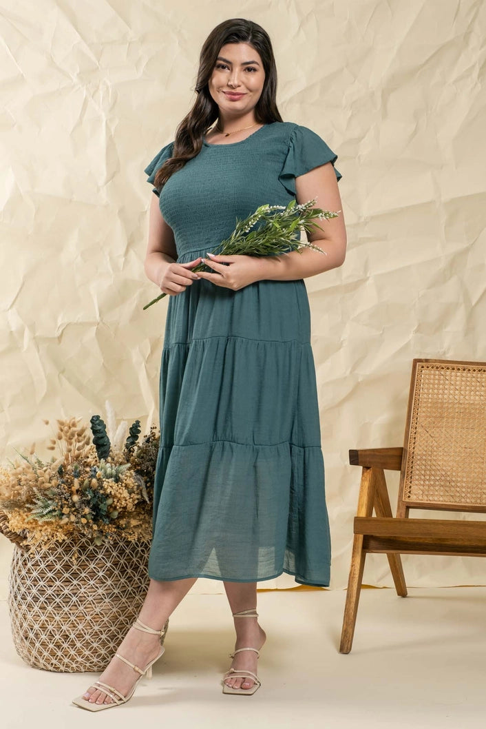 • Load image into Gallery viewer, The Sylvana Plus Tiered Dress~Hunter Green